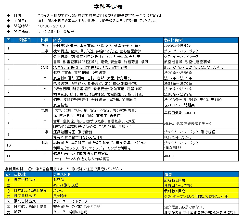 グライダーの安全運航に関しては、個々人の知識と技能だけでなくそこで活動する団体全てが安全の為のルールを作り、それを守って運航することが重要です。